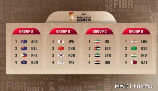 在男篮世界杯正式拉开帷幕之前,各大洲的球队均需先参与预选赛的角逐。预选赛划分为两个阶段,在第一阶段,亚洲区被划分为ABCD四个小组,每组包含四支球队。小组赛共设置三个窗口期,在此期间,各小组内的球队将两两交锋。最终,每个小组的前三名球队将成功晋级至下一阶段。