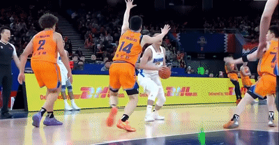川队半场12分4板2助2断,杰曼11分3板4助,全队除了范子铭外人人都有得分,北京凭借节末一波12-3,单节轰下33分,半场北京46-40反超上海,相当不可思议,许利民自己也看乐了。