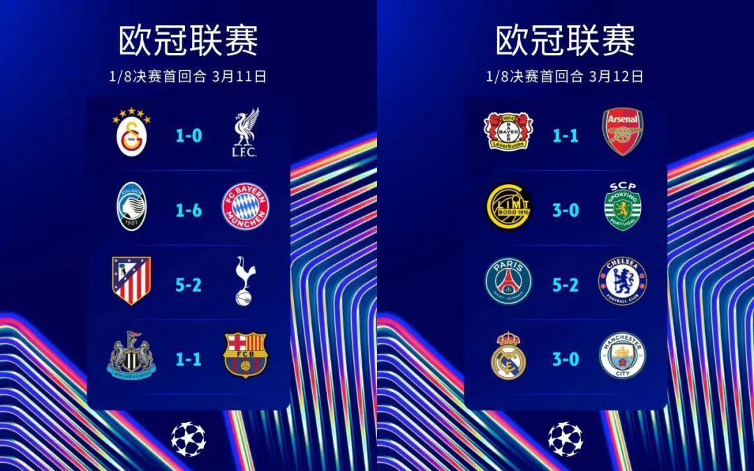 中国九游体育-欧冠1/8决赛首回合综述:闪耀哥5连胜神挡杀神,英超6队得2分丢16球