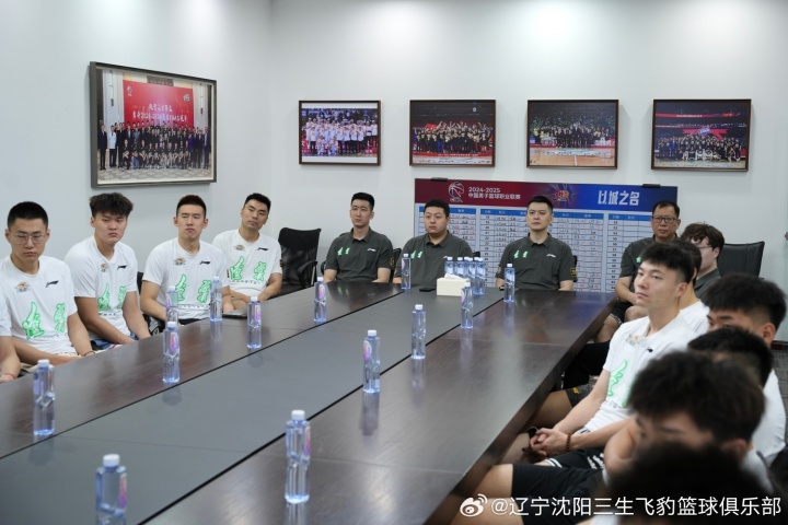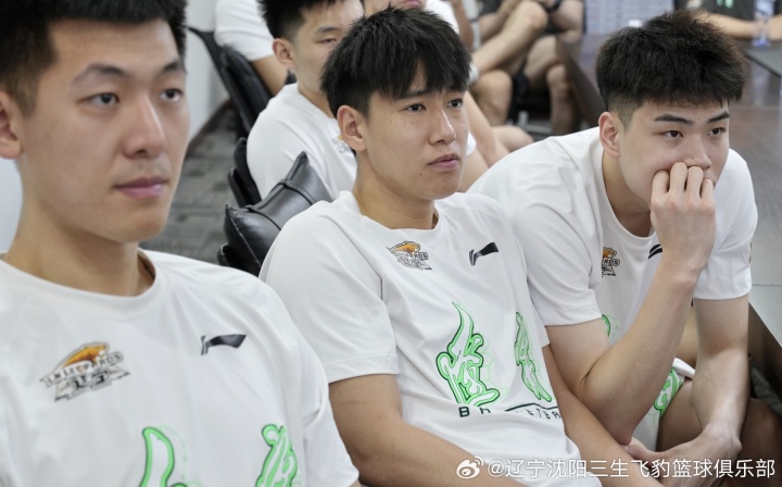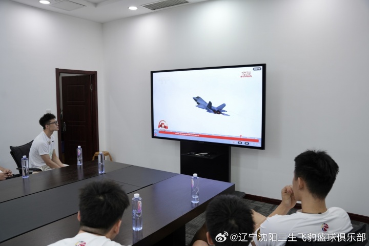 2025年9月3日上午,辽宁沈阳三生飞豹篮球俱乐部组织教练组和全体球员在会议室内集体观看了中国人民抗日战争暨世界反法西斯战争胜利80周年阅兵式直播。队员们身着统一服装,神情庄重而兴奋。